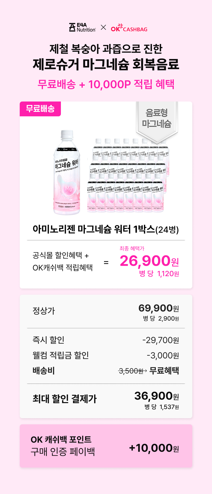 [OK 캐쉬백] 아미노리젠 마그네슘 워터 제로슈거 이온음료 1박스(회원 전용)